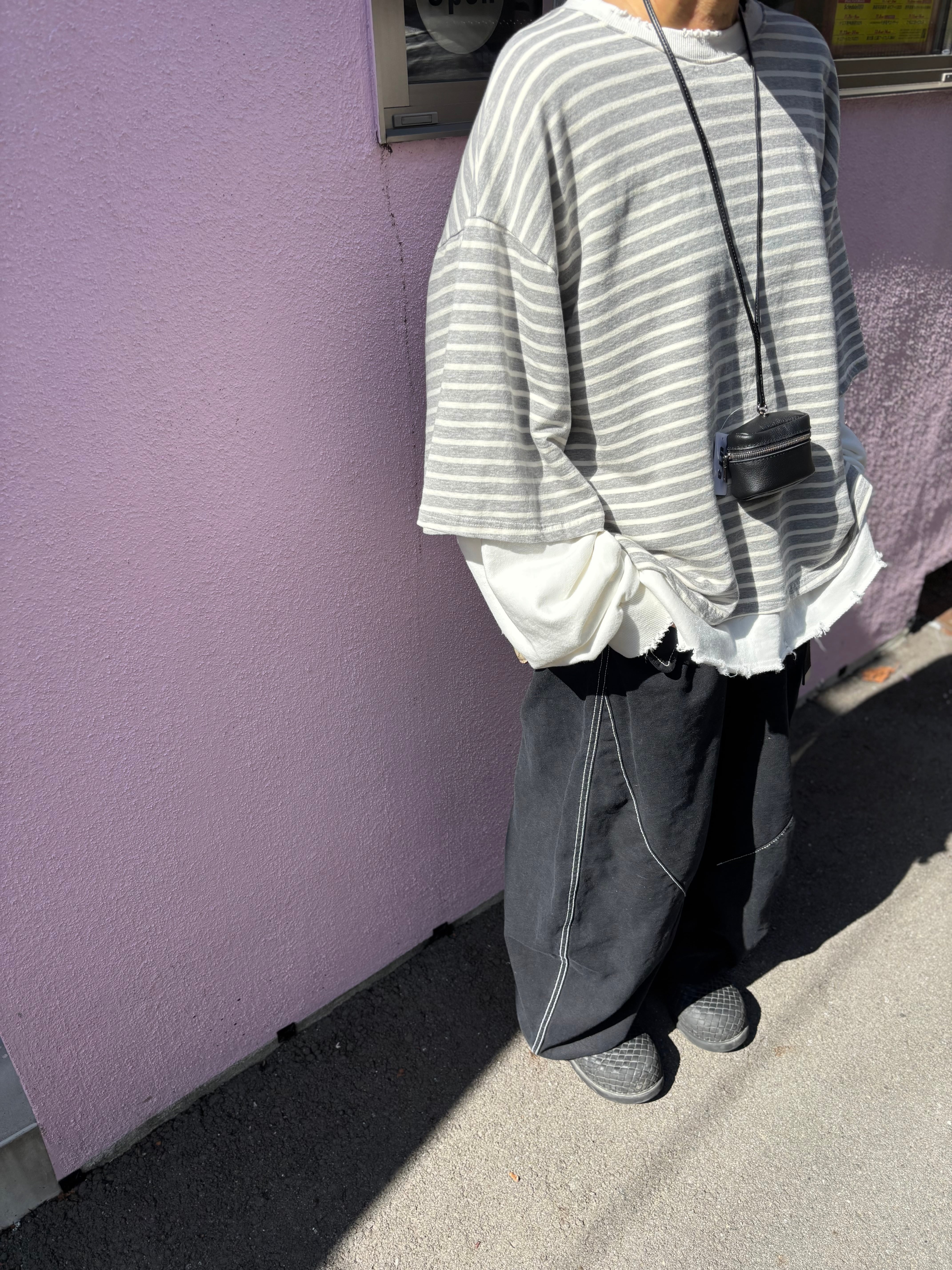 重ね着風のボーダースウェット